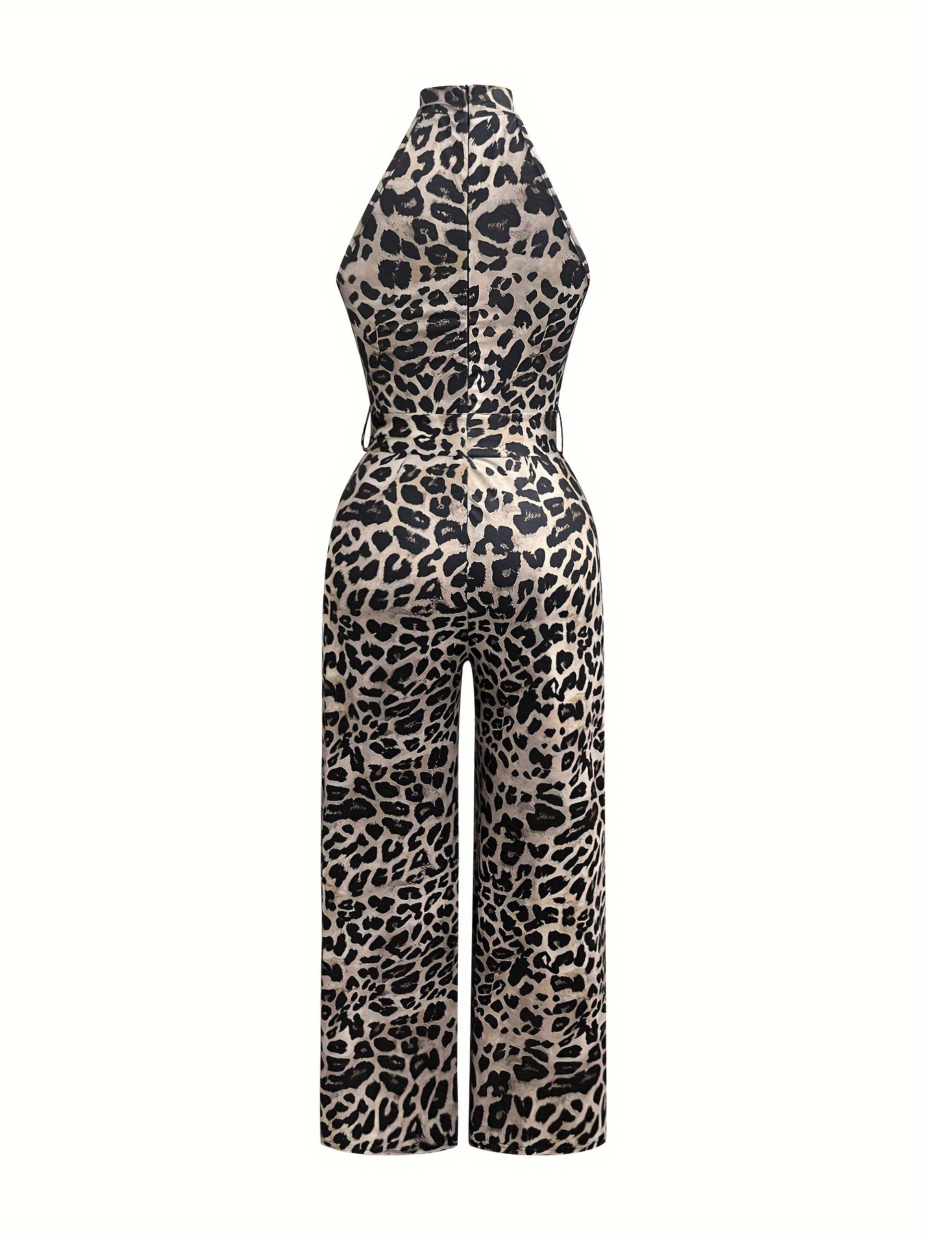 Sultry Leopard Print Bodycon Jumpsuit - High-Waisted, Open Back, Polyester Elastane Blend, All-Season Fashion for Women, Sexy and Confident Style