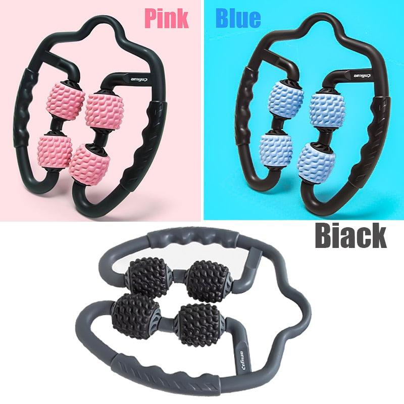 U Shape Trigger Point Massage Roller for Arm Leg Neck Muscle Tissue for Fitness Gym Yoga Pilates Sports 4 Wheel