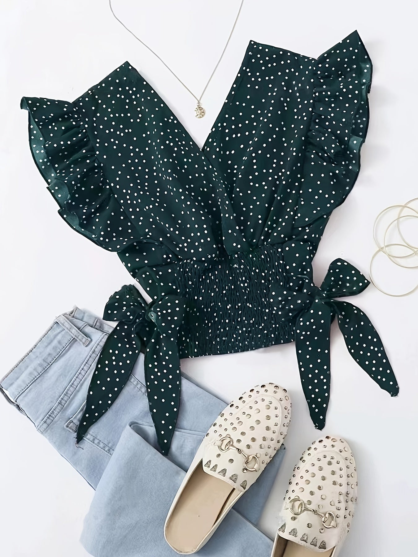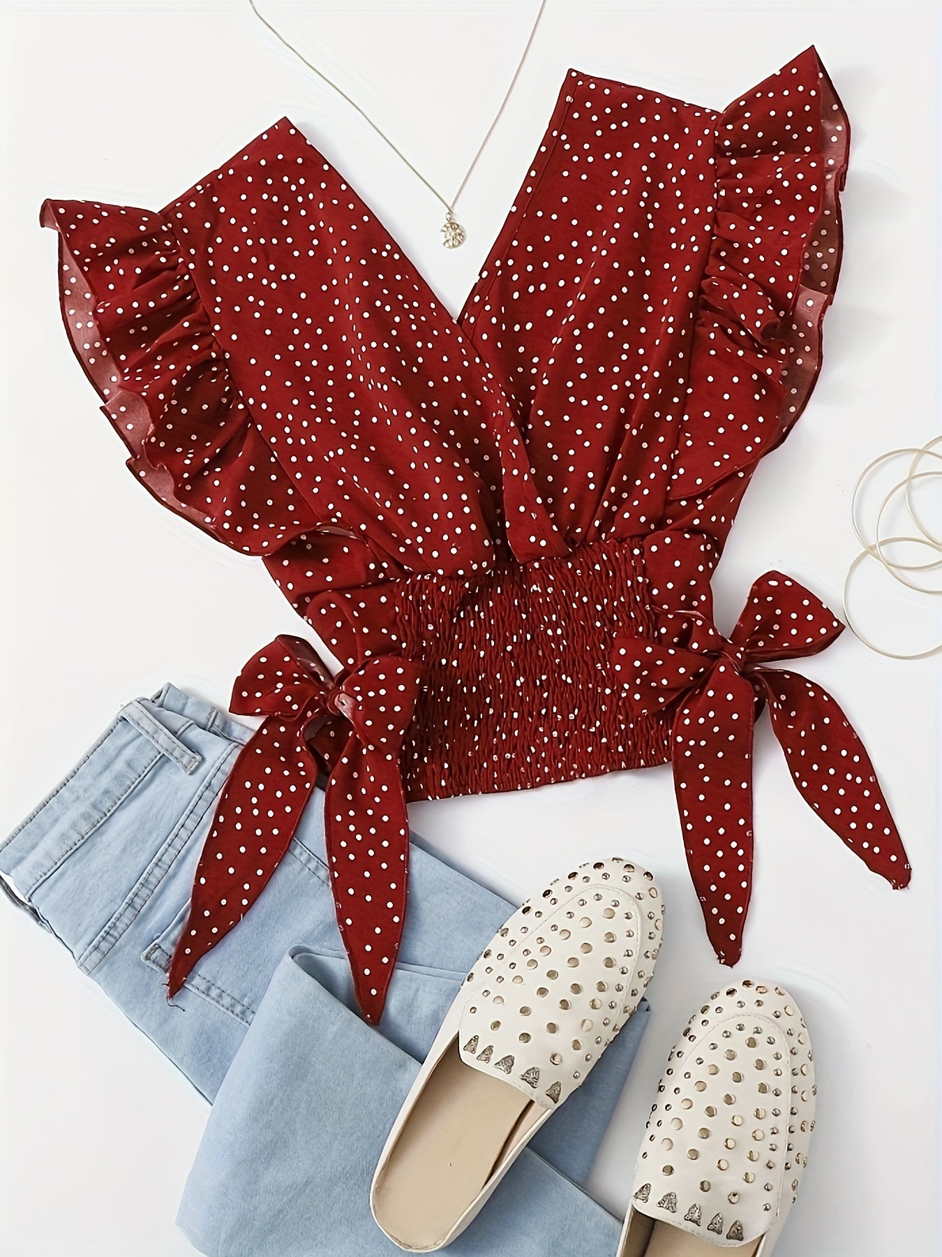 Vibrant Allover Print Blouse with Chic Bow Accent - Flattering Surplice Neck & Ruffled Waist - Womens Casual Fashion