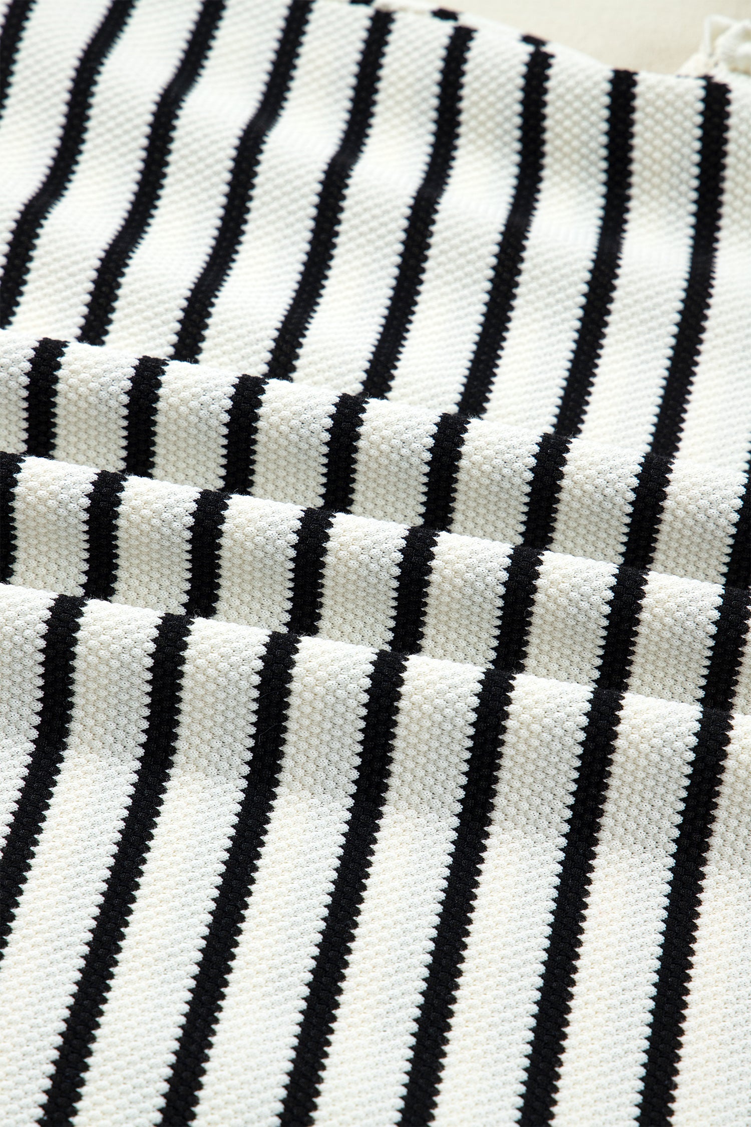 White Stripe Ruffle Trim Drop Shoulder Top Drawstring Loose Pant Set