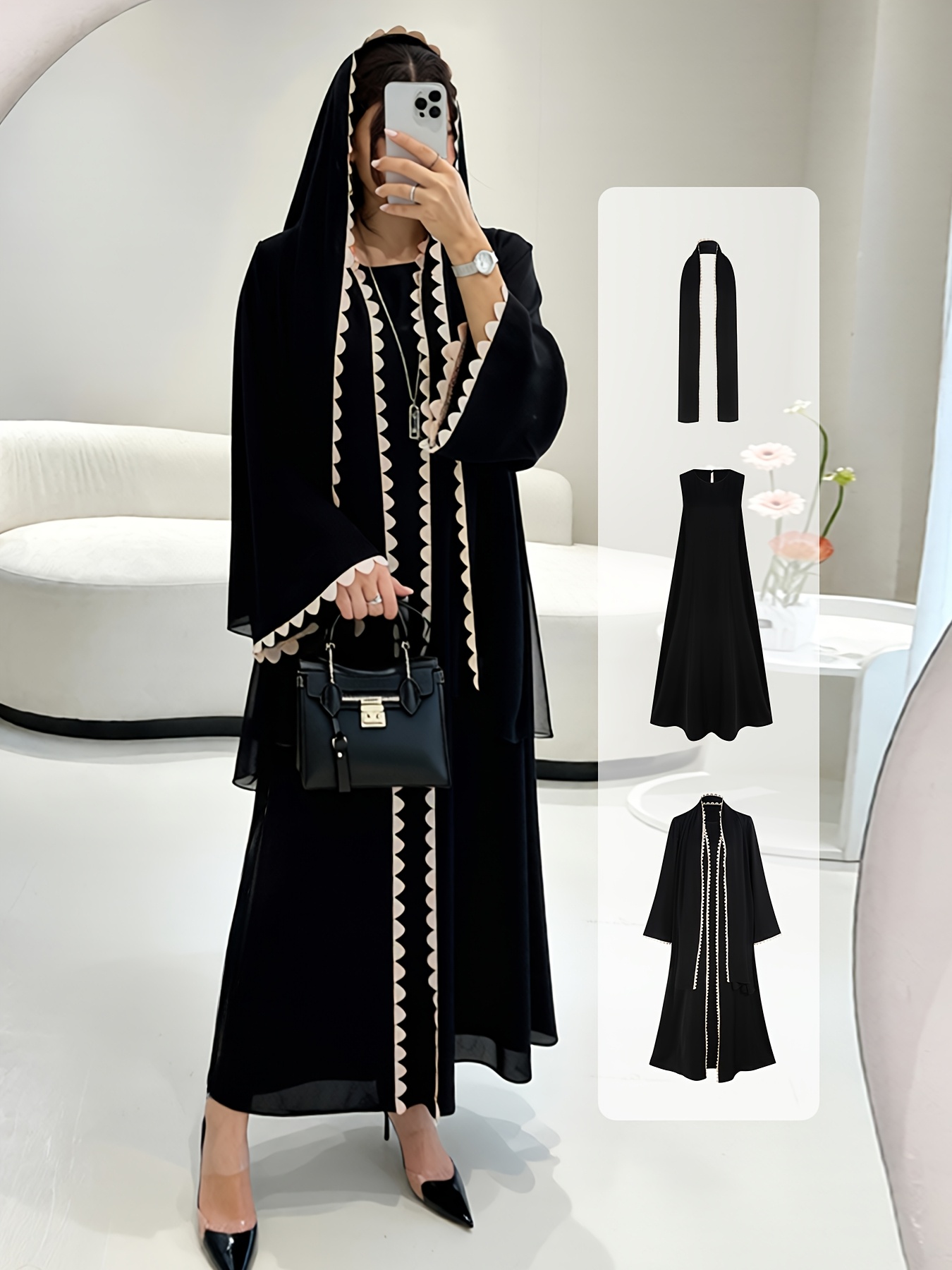 Women'S Autumn New Middle Eastern 3pcs Set: Solid Color Abaya Jacket/Sleeveless Dress/Headscarf, Middle Eastern Arab, Islamic Style Shawl, Ramadan Prayer Dress, Long Skirt LL168, Perfect for Thanksgiving, Women Elegant Winter