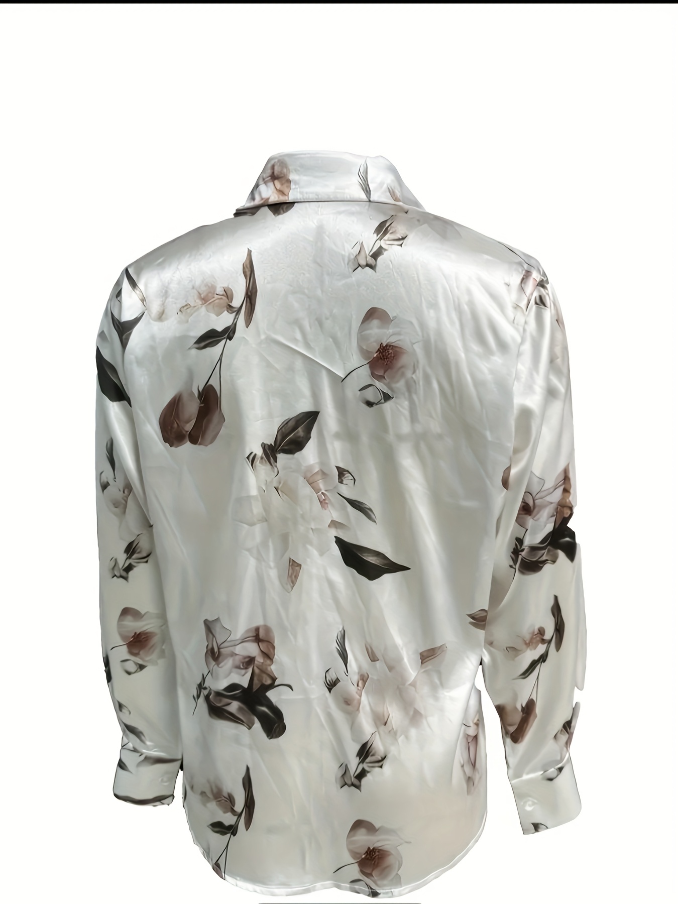 Women's Elegant Floral Print Long Sleeve Shirt - Soft Collar Blouse with Button Front, Machine Washable H-Silhouette Top for Autumn/Winter, Casual & Professional Outfits, Autumn Fashion, Easy Care, Buttonup Shirt, Stylish Wom