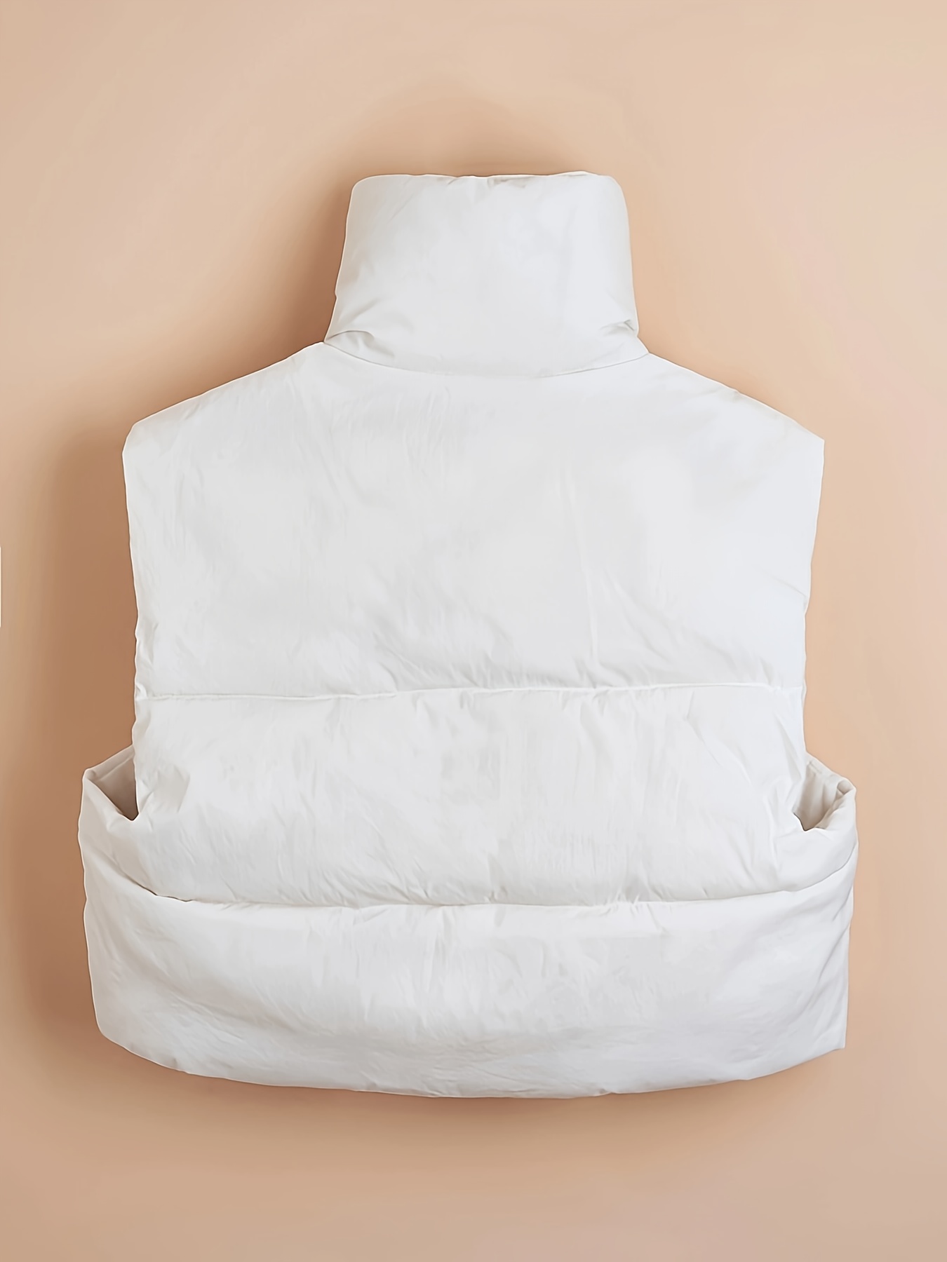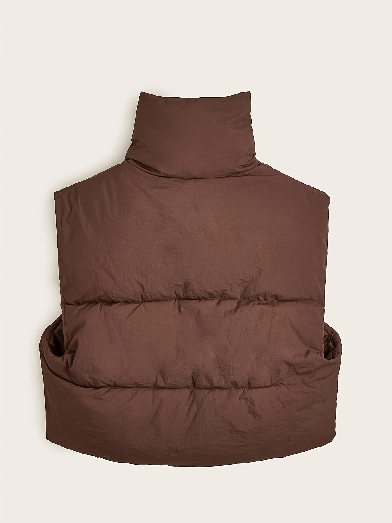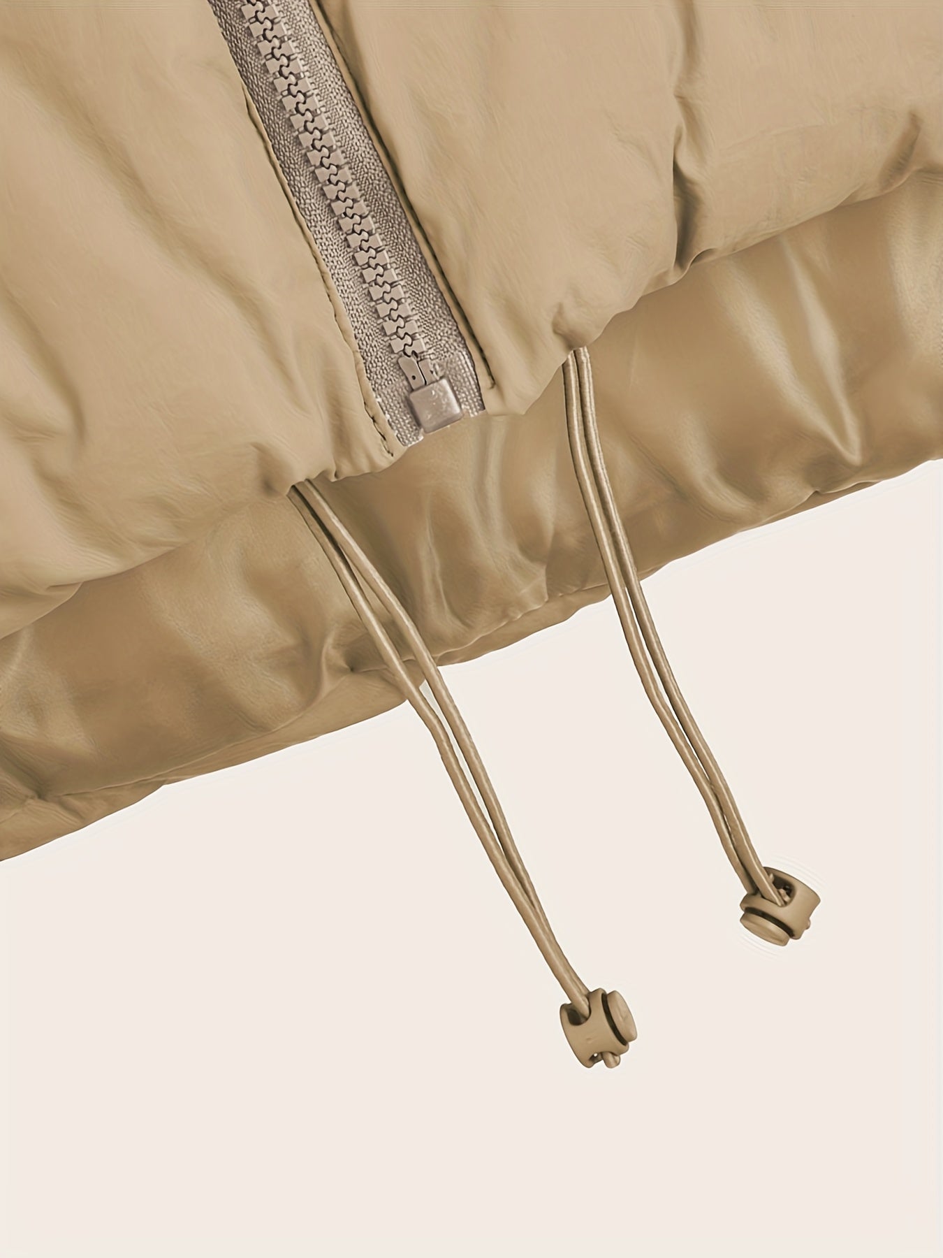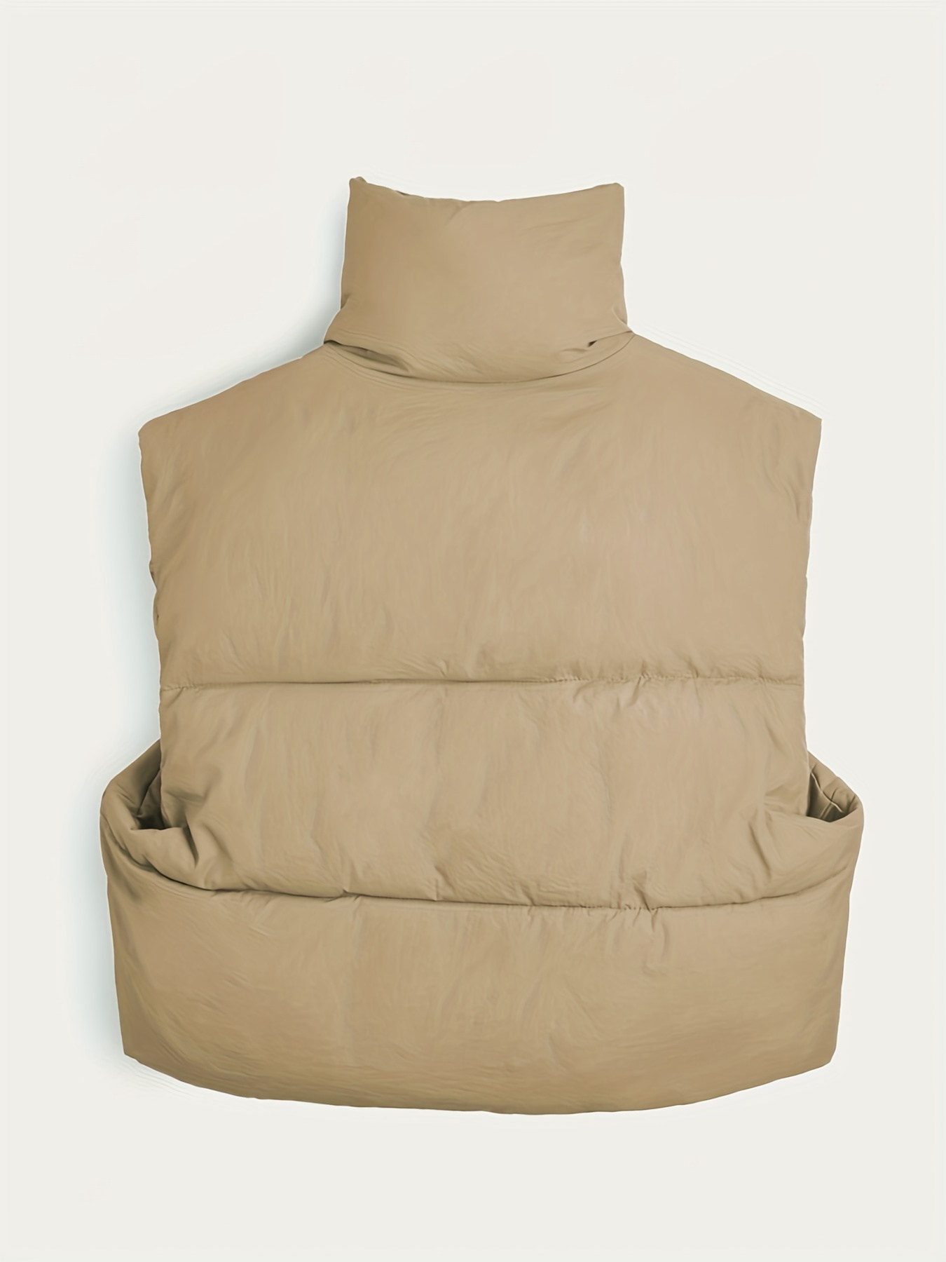 Women'S Elegant High-Neck Padded Vest with Drawstring Detail - Solid Color, Thick Warm Winter Sleeveless Jacket Vest, Casual Streetwear Style, 200g/m² Fabric Weight, Autumn/Winter Essential