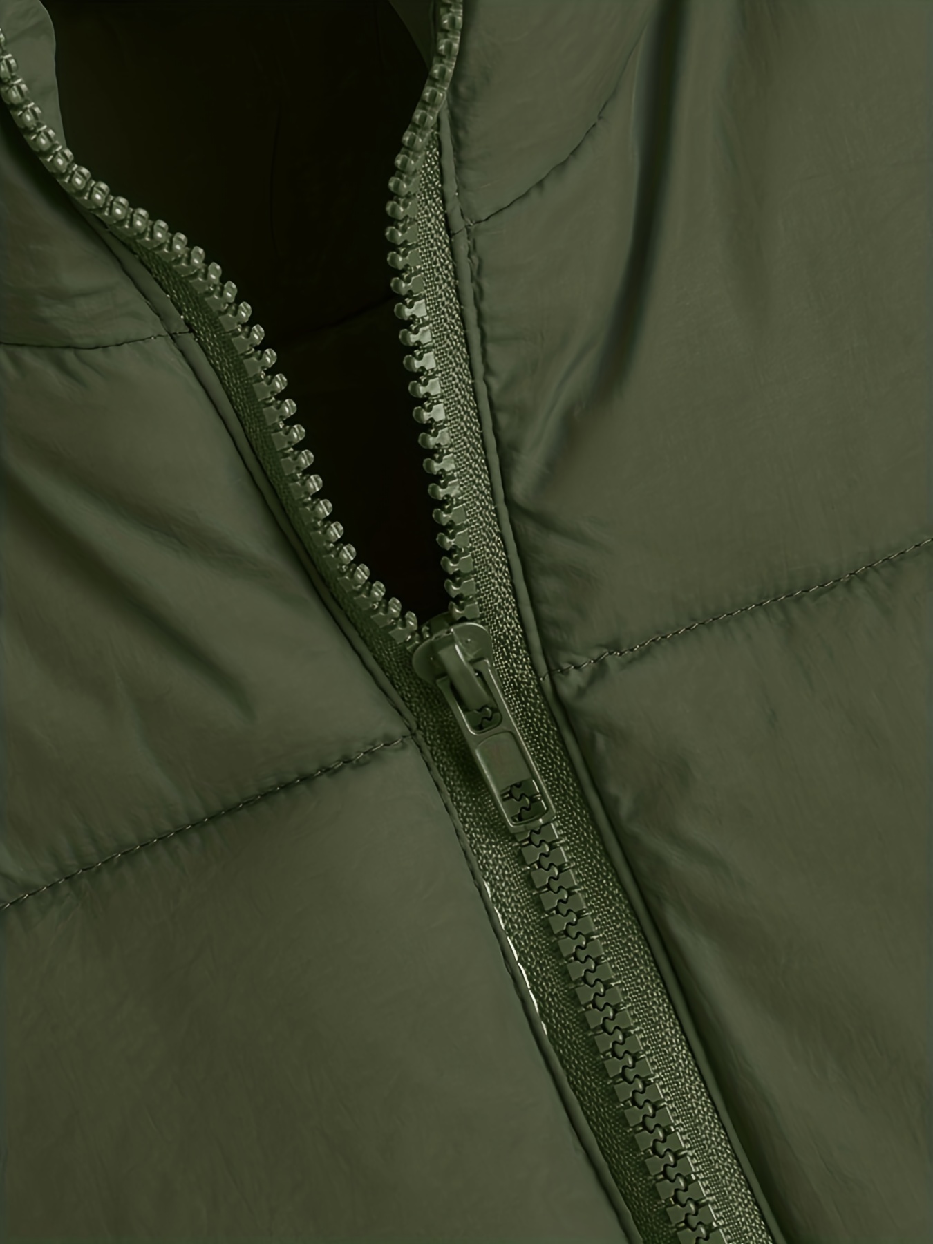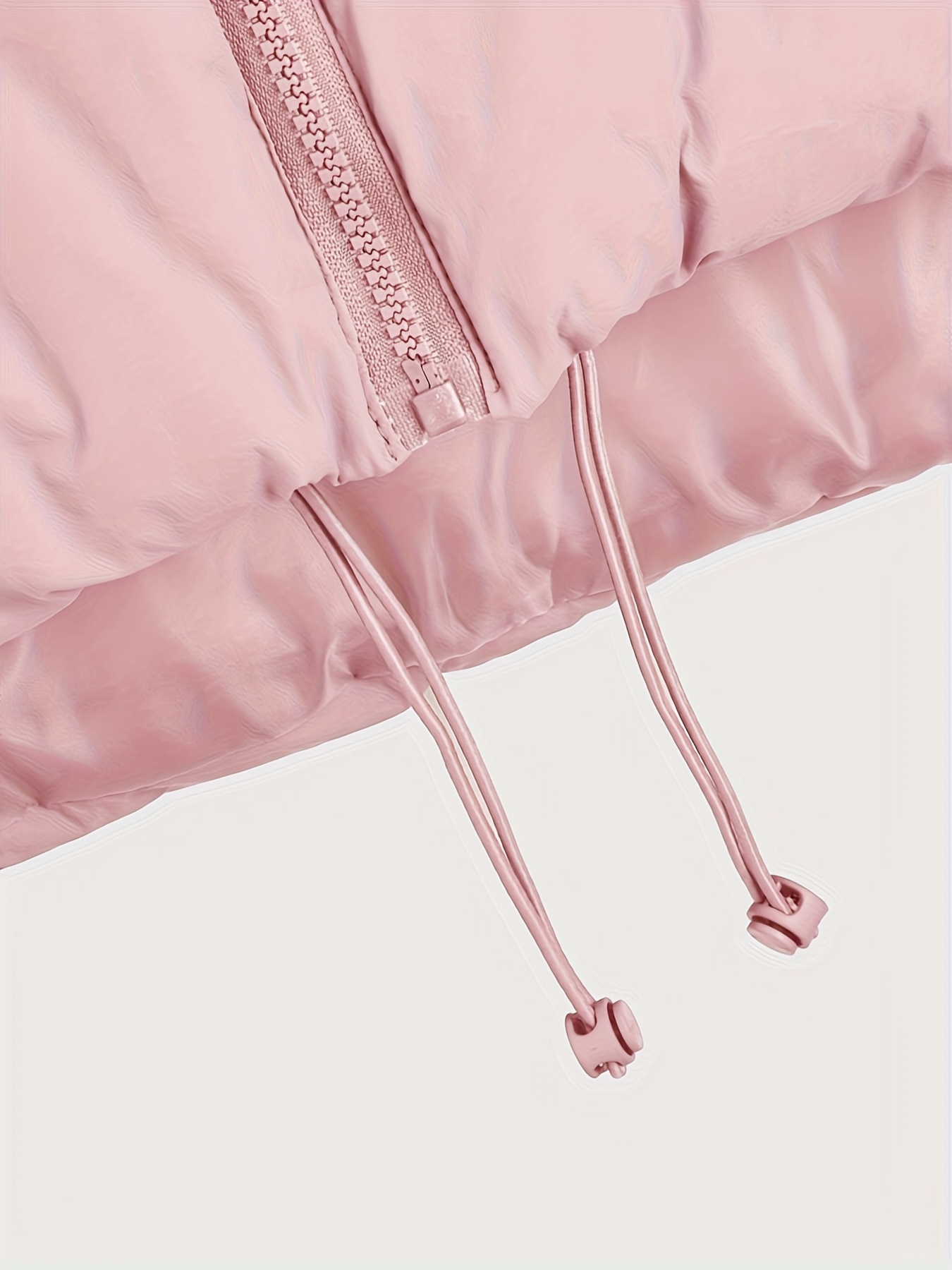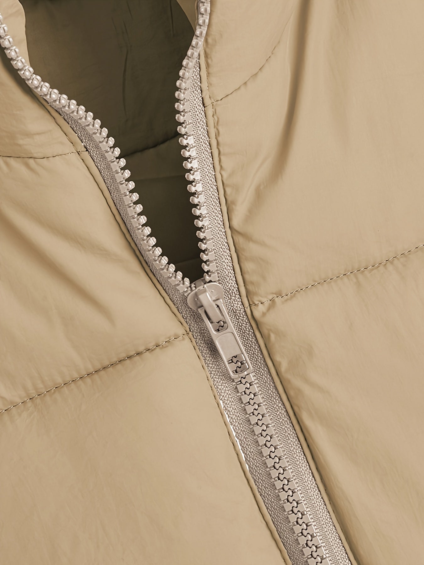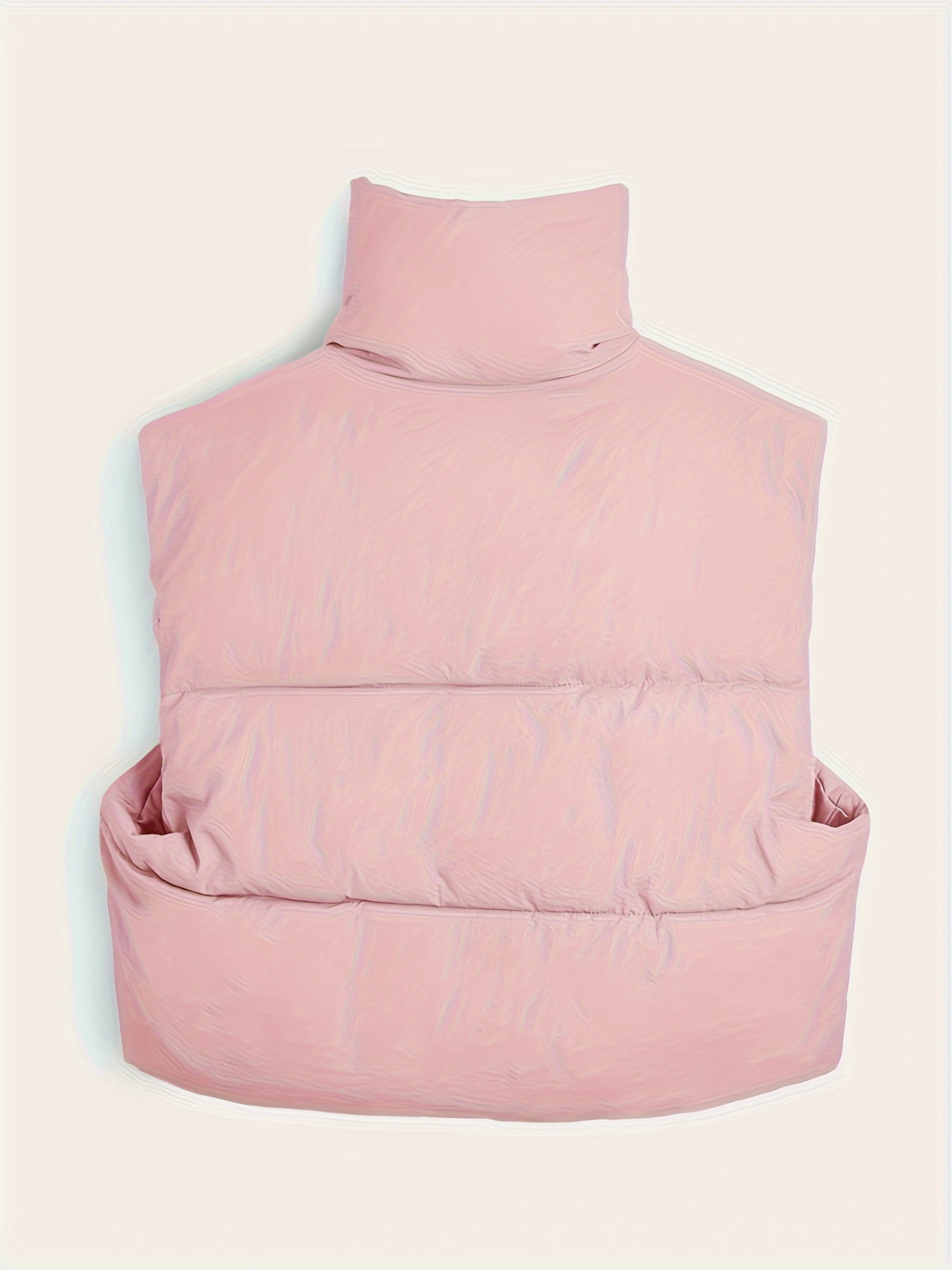 Women'S Elegant High-Neck Padded Vest with Drawstring Detail - Solid Color, Thick Warm Winter Sleeveless Jacket Vest, Casual Streetwear Style, 200g/m² Fabric Weight, Autumn/Winter Essential