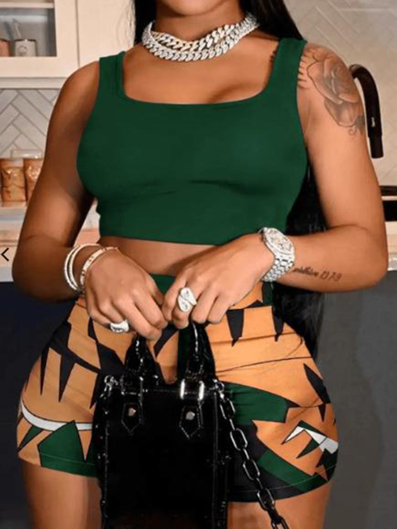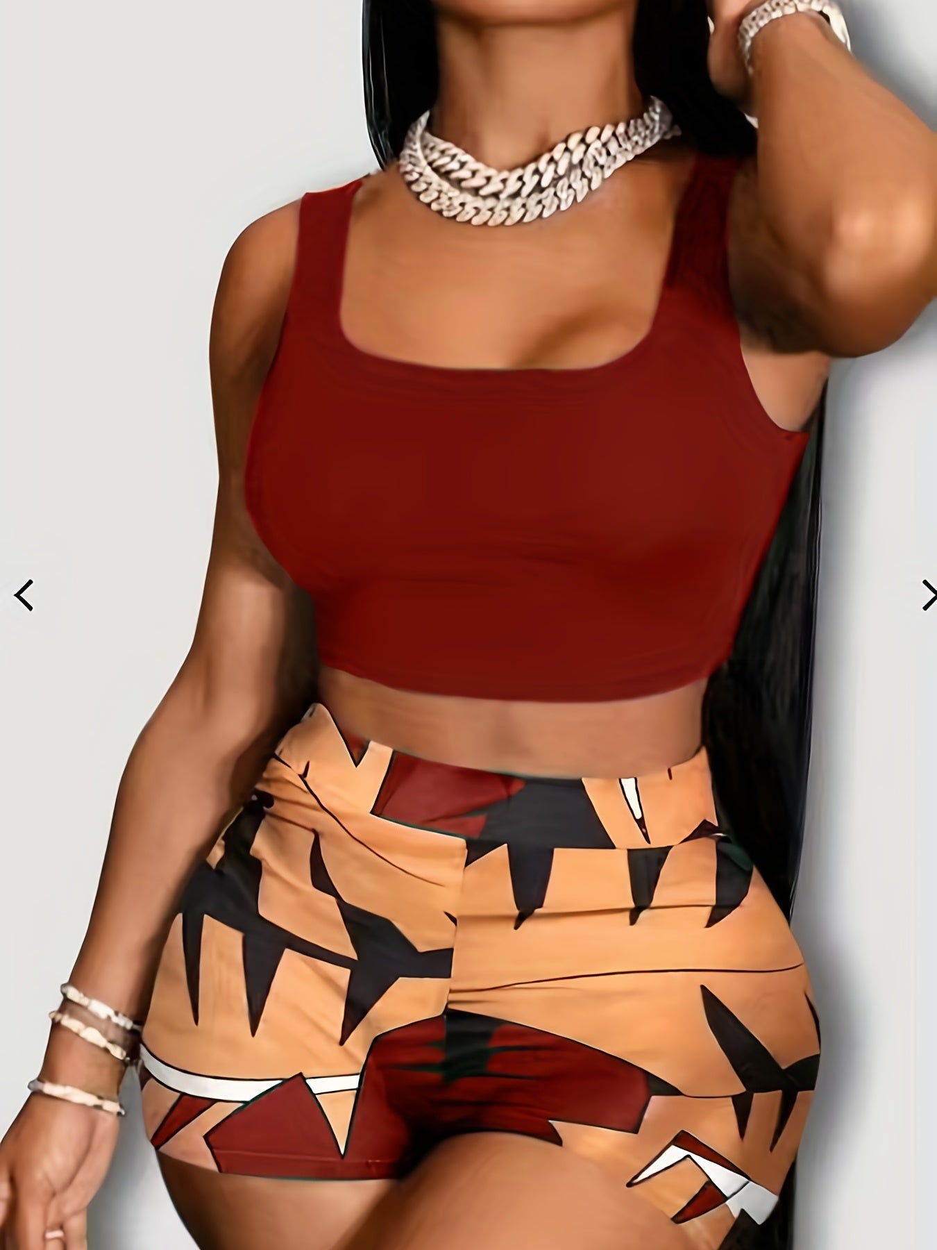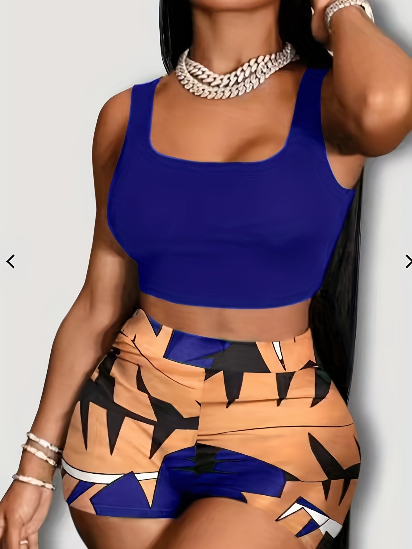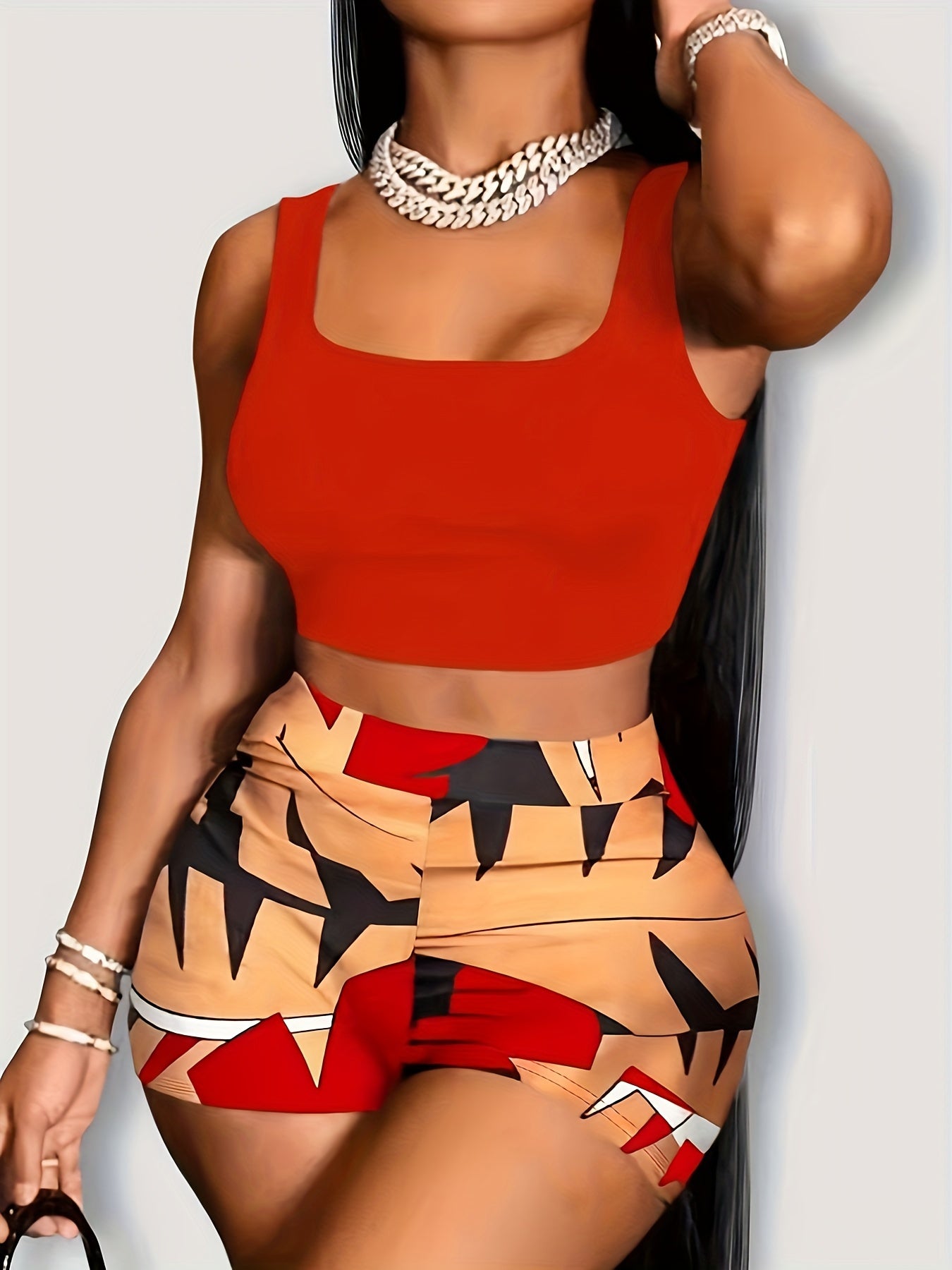 Womens Hawaii Beach Vacation Set - Vibrant Numerical Print Tank Tops & Shorts, 2-Piece Comfortable Ensemble for Stylish Holiday Wear