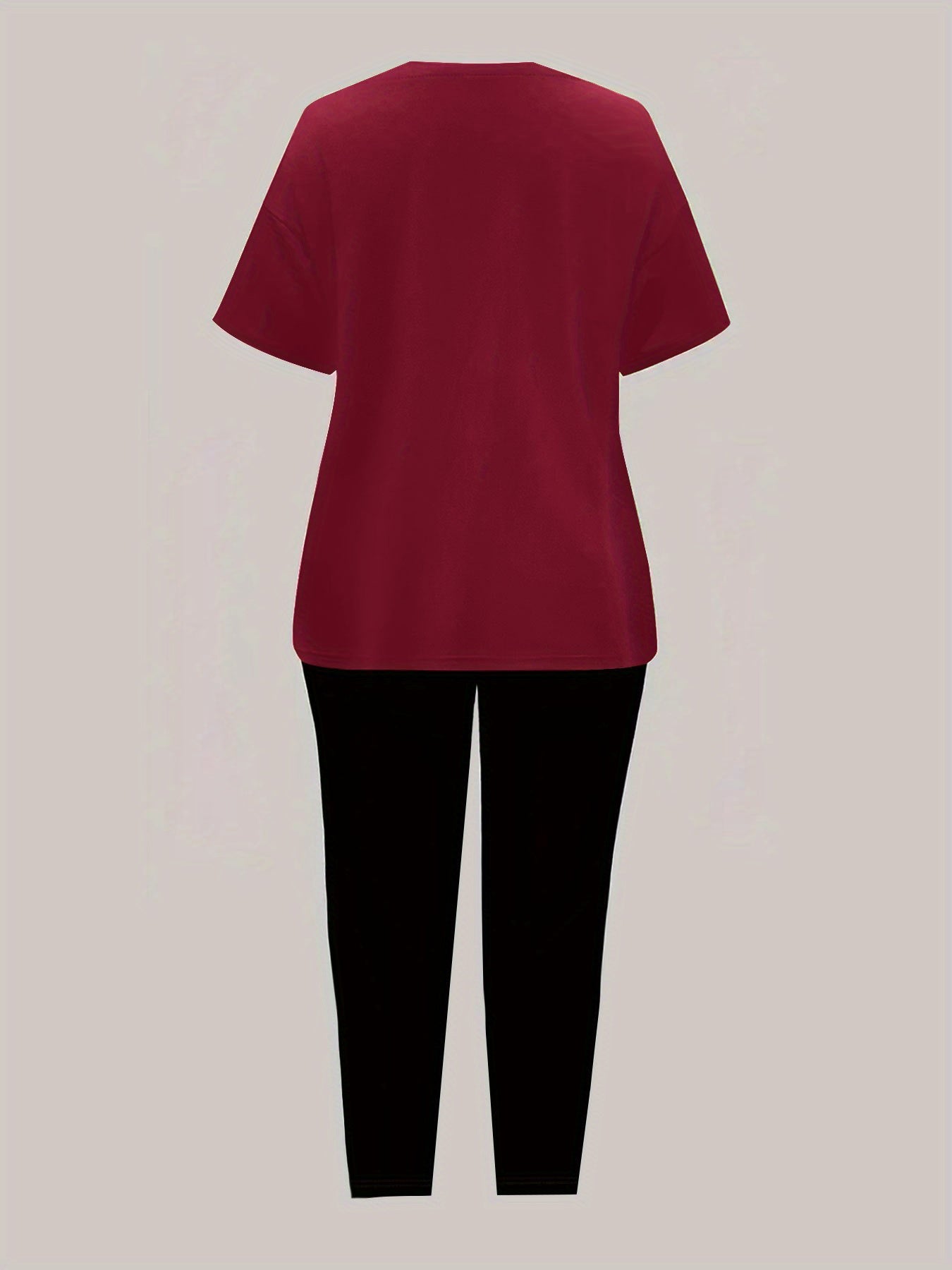 Women'S K-WAY Graphic Print Short Sleeve Crop Top & High-Waisted Leggings Set - Black with White Lettering, Stretchy Polyester Blend, Casual Streetwear Style, Spring/Summer Collection, High Waisted