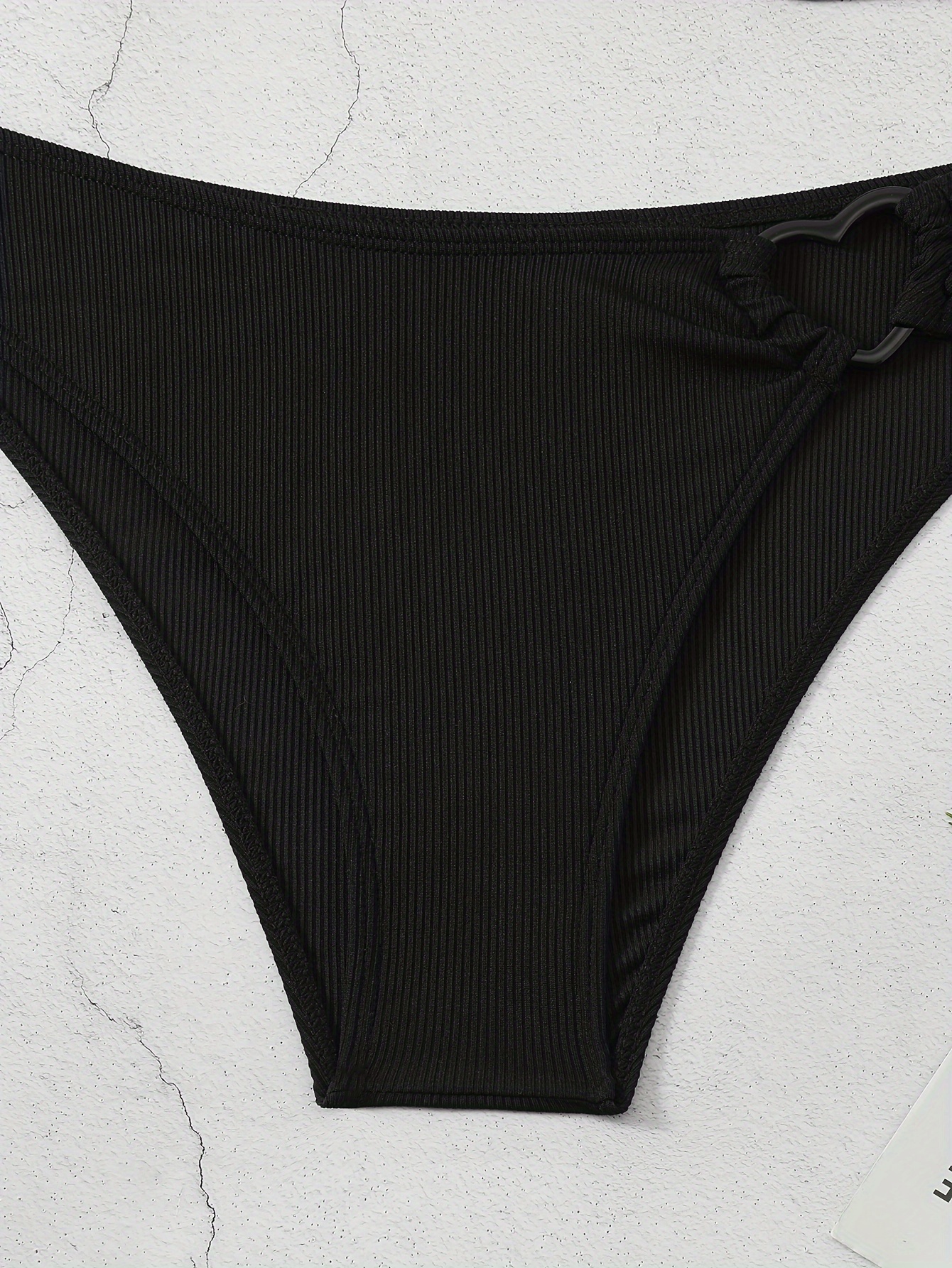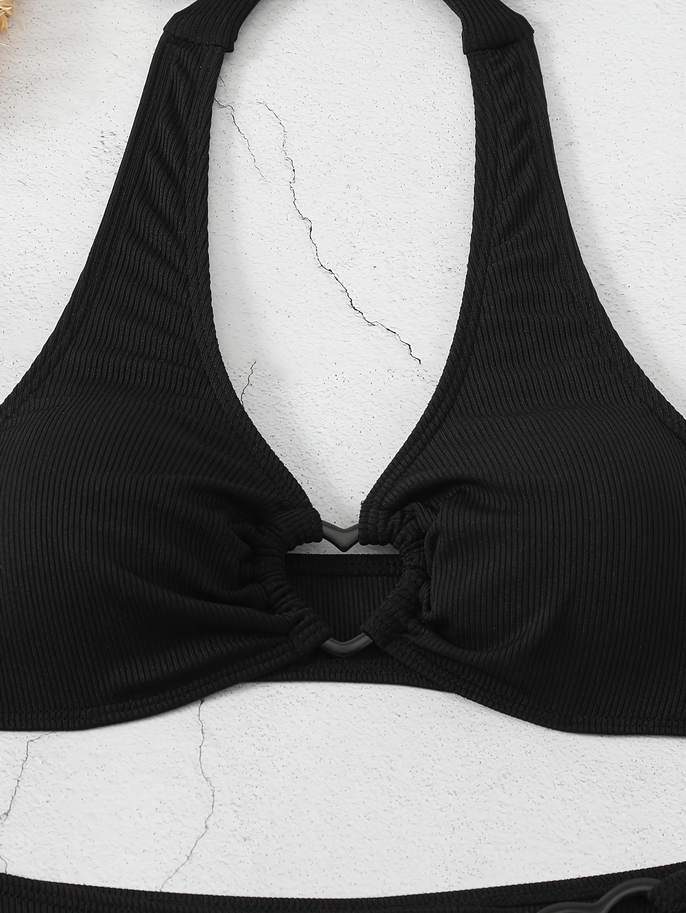 Women's Ribbed Textured Bikini Set With Bow Tie Halter Top And High Cut Bottoms, Heart-Linked Two Pieces, Beachwear, Swimwear