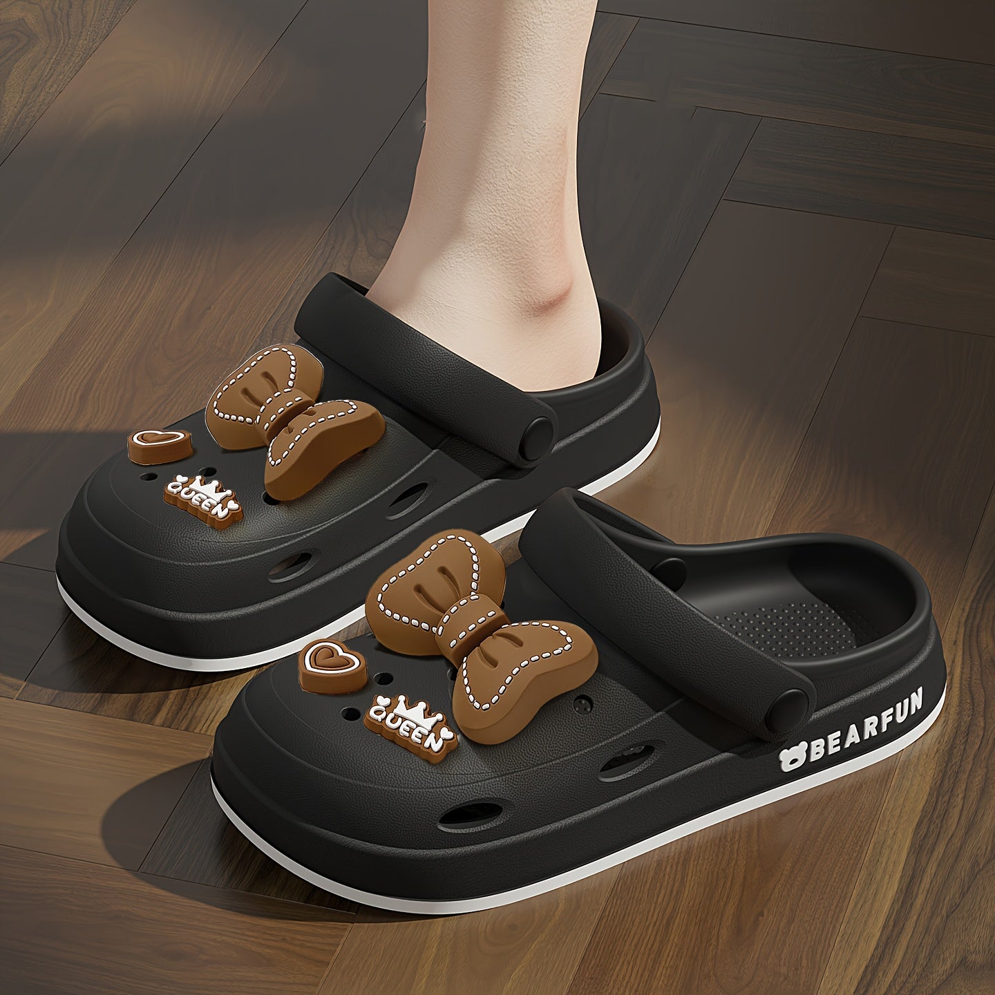 Women's White EVA Bow-Embellished Slippers - Lightweight Summer Beach Sandals with Thick Cushioned Sole, Soft Round Toe and Minimalist Design, Suitable for Indoor/Outdoor Use, Hand Washable